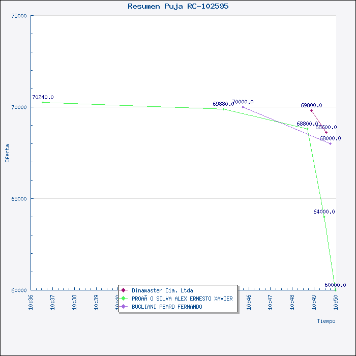 | Razón de adjudicación | La Comisión, luego del proceso de PUJA realizado en el Portal de Compras Públicas del MIC, y luego del resultado obtenido, resuelve por unanimidad, recomendar al Señor Superintendente General de Operaciones, Enc., adjudicar la Invitación a Cotizar No. 021-VPR-SUBASTA EN LÍNEA-2008 (RC-102595), para la Adquisición de Trapos de Limpieza Industrial, al Ing. Alex Proaño, por el valor de US$60.000,00 (sin IVA) y la entrega del material en 40 días. |