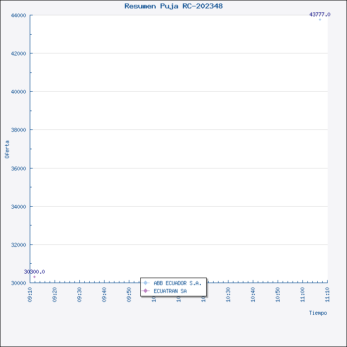 La Comisión, luego del proceso de PUJA realizado en el Portal del MIC, y luego del resultado obtenido, y en razón que la Empresa ECUATRANS S.A., presentó su oferta por US$30.300,oo (sin IVA), siendo la más baja y que cumplen con las condiciones técnicas, legales y económicas de la invitación, requeridas por Petroproducción, resuelve por unanimidad, recomendar al señor Jefe de Materiales adjudicar la Invitación a Cotizar 003-VPR-SUBASTA-2008 (RC-202348), para la Adquisición de Transformador Trifásico 1000 KVA TIPO PAD MOUNTED, a la compañía Ecuatrans S.A., por el valor de US$30.300,00, (sin IVA) y la entrega del material en 9 semanas. |