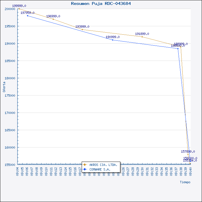 La Comisión de Compras, en reunión 009 del 15 de abril del 2008, luego de efectuar el análisis y en razón de que la oferta presentada por la compañía Akros Cía. Ltda., cumple con las condiciones legales, técnicas y económicas requeridas por PETROPRODUCCION, resuelve por unanimidad, recomendar al señor Vicepresidente, adjudicar el proceso de Contratación Directa con Subasta en Línea No.001-VPR-SUBASTAENLINEA-2008 (RDC-043684), Adquisición de 170 Computadoras Personales Marca DELL para PETROPRODUCCION, a la compañía Akros Cía. Ltda., por un valor de US$155.354,00 más el 12% del IVA, plazo de entrega de los equipos, 45 días a partir de la suscripción del contrato.