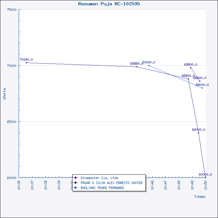 La Comisión, luego del proceso de PUJA realizado en el Portal de Compras Públicas del MIC, y luego del resultado obtenido, resuelve por unanimidad, recomendar al Señor Superintendente General de Operaciones, Enc., adjudicar la Invitación a Cotizar No. 021-VPR-SUBASTA EN LÍNEA-2008 (RC-102595), para la Adquisición de Trapos de Limpieza Industrial, al Ing. Alex Proaño, por el valor de US$60.000,00 (sin IVA) y la entrega del material en 40 días.